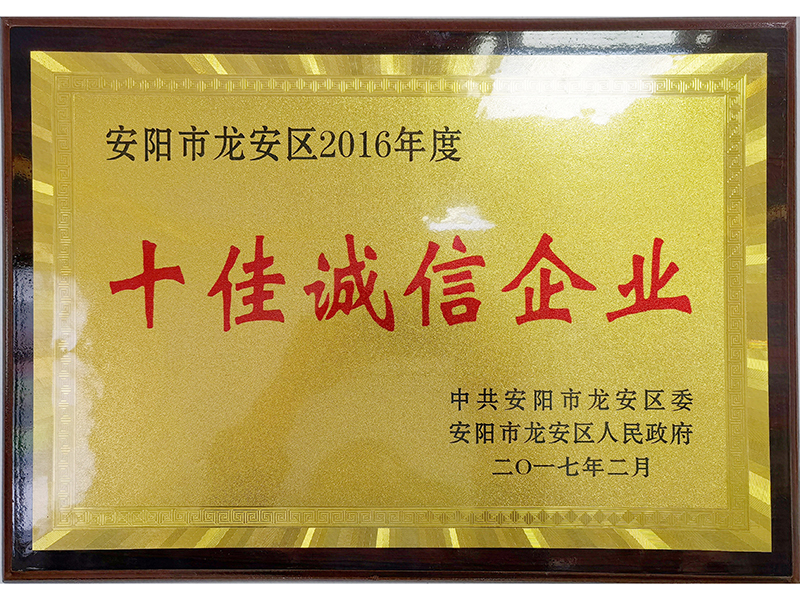 2016年度十佳誠信企業(yè)