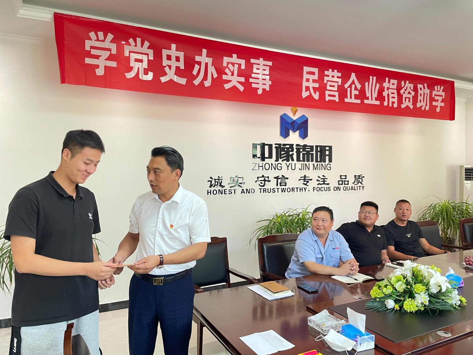 7月30日,中豫錦明舉行了“中豫錦明,民營(yíng)企業(yè)捐資助學(xué)儀式”,公司董事長(zhǎng)王志明為今年參加高考的員工子女,發(fā)放了獎(jiǎng)學(xué)金。既是公司對(duì)員工辛勤付出的獎(jiǎng)勵(lì),也是對(duì)孩子們最美好的祝福和最殷切的期待。